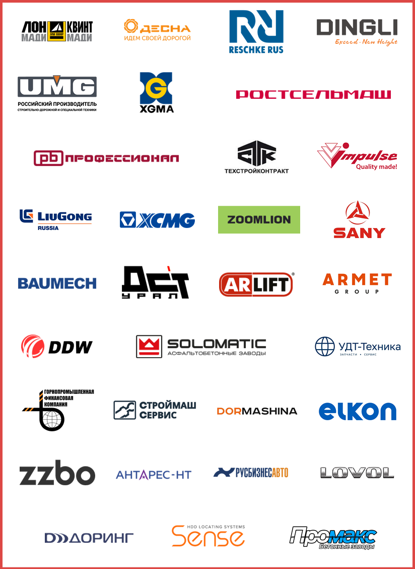 🔖 Reschke Rus, Дормашина, Dingli, ДСТ Десна, ZZBO, UMG, ИСТК, XGMA, Ростсельмаш, Антарес-НТ, Elkon, Промакс, Профессионал, ТСК, Технопарк Импульс (Традиция К), Русбизнесавто, LiuGong, XCMG, Zoomlion, Sany, Lovol, Лонмади, Квинтмади, Баумех, ДСТ Урал, Арлифт, Армет групп, Сенсе, DDW, Завод Соломатик, ТТМ, УДТ-Техника, Доринг, Горнопромышленная финансовая компания, ИТС, СтройМашСервис, Гидродрайв, и многие другие.